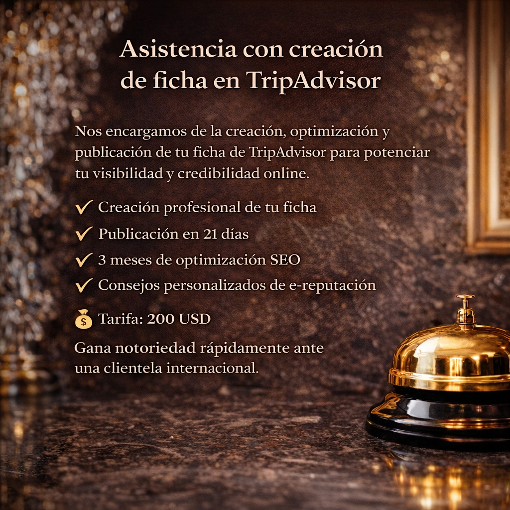 • Asesoramiento personalizado para mejorar tu reputación online y reforzar de forma duradera tu posicionamiento en TripAdvisor