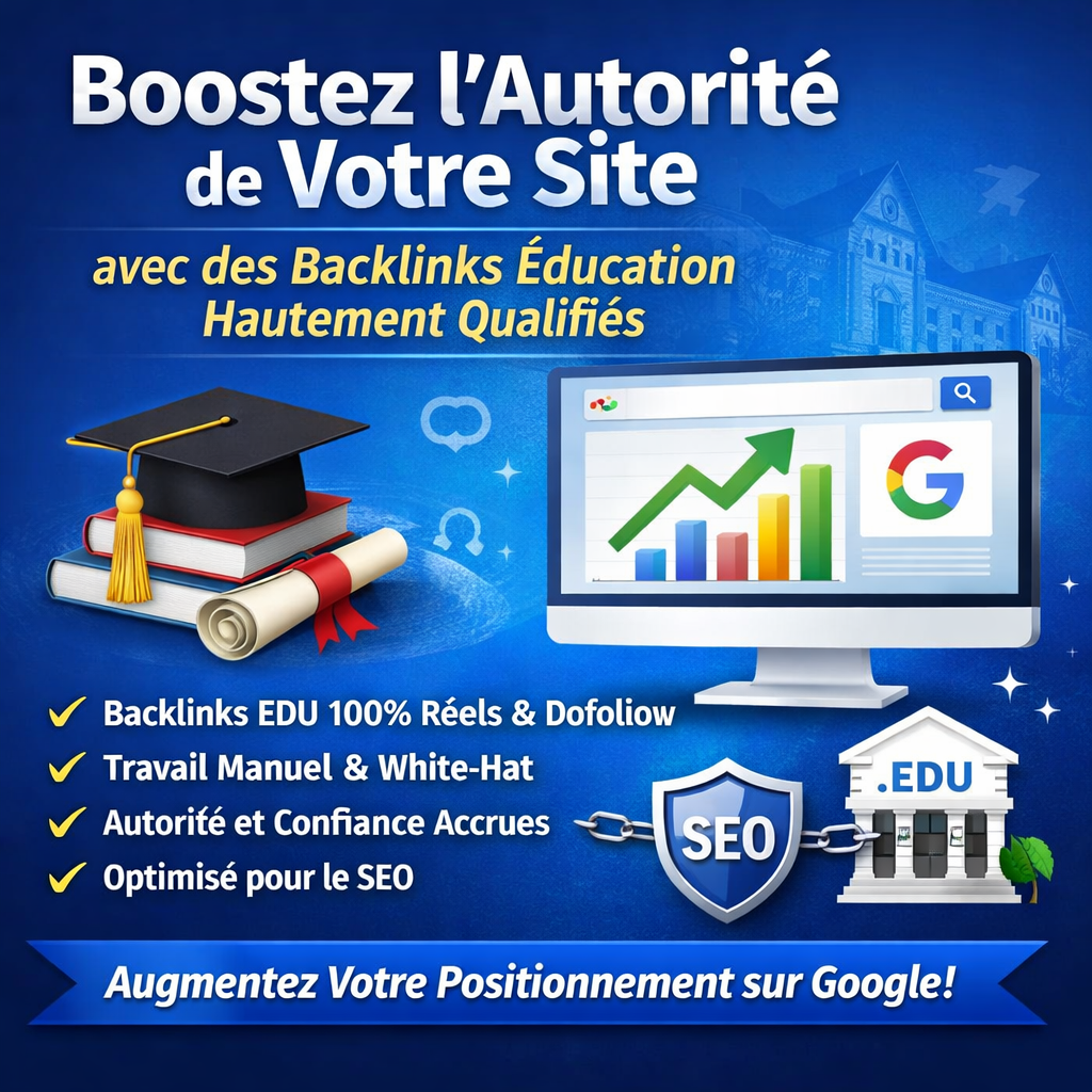 Nous créons des backlinks EDUCATION 100 % réels, manuels et en dofollow afin d’augmenter l’autorité, la crédibilité et le positionnement de votre site sur les moteurs de recherche.
