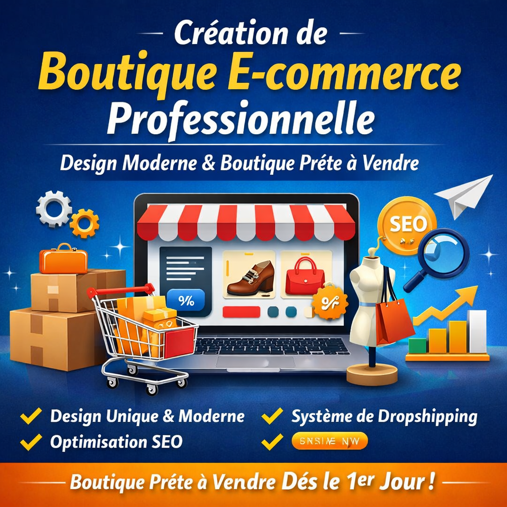 En tant qu’experts en création de boutiques e-commerce, nous concevons des sites modernes, performants et optimisés pour la conversion, parfaitement adaptés aux objectifs de votre marque. Que vous souhaitiez lancer une nouvelle boutique, moderniser un site existant ou mettre en place un système de dropshipping automatisé, nous vous accompagnons avec des solutions complètes et professionnelles.