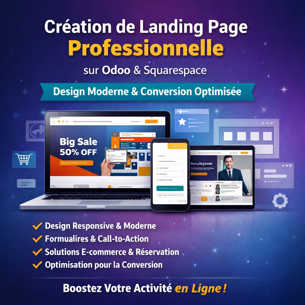 Vous recherchez une landing page professionnelle sur Odoo ou Squarespace qui reflète l’image de votre marque et génère des résultats concrets ? Vous êtes au bon endroit.