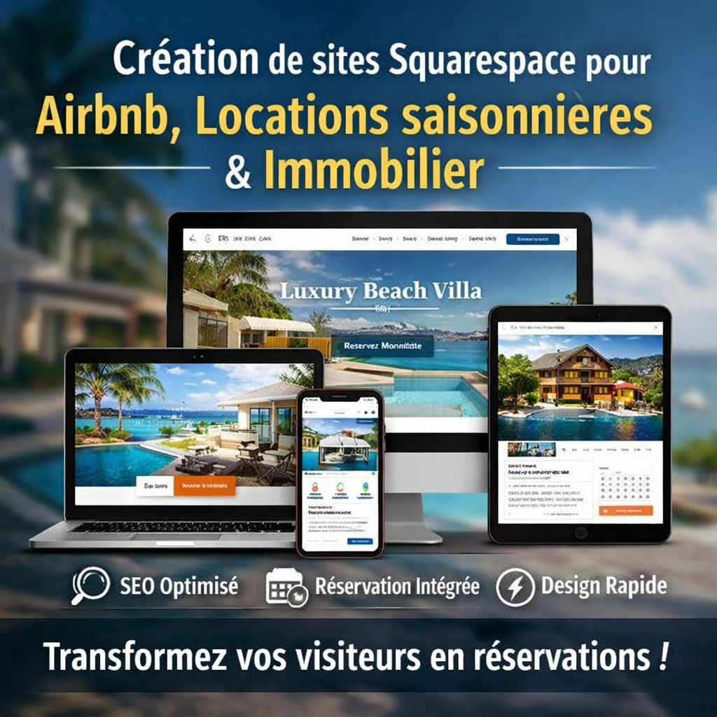 Nous concevons et développons des **sites Squarespace professionnels** spécialement pour les **gestionnaires de propriétés, hôtes Airbnb, locations saisonnières et entreprises immobilières**.