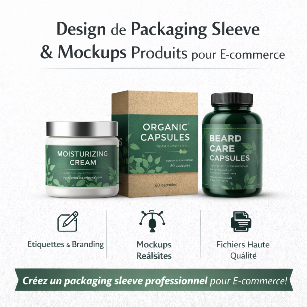Un sleeve packaging bien conçu permet de communiquer efficacement votre identité, tandis que des mockups réalistes présentent votre produit de manière professionnelle.