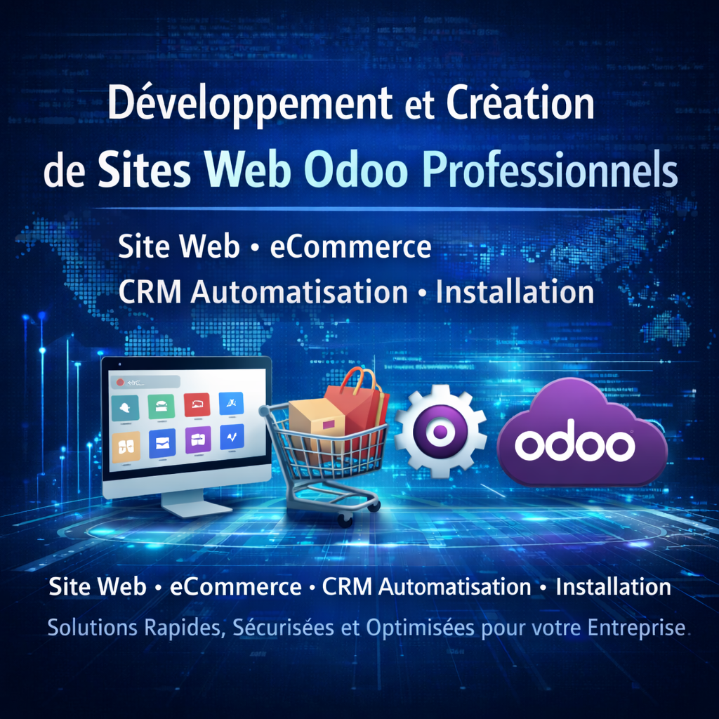 Nous sommes spécialisés dans la création de sites Odoo, le e-commerce Odoo, l’automatisation CRM et le développement complet de solutions Odoo pour les entreprises qui souhaitent améliorer leurs processus et renforcer leur présence en ligne.