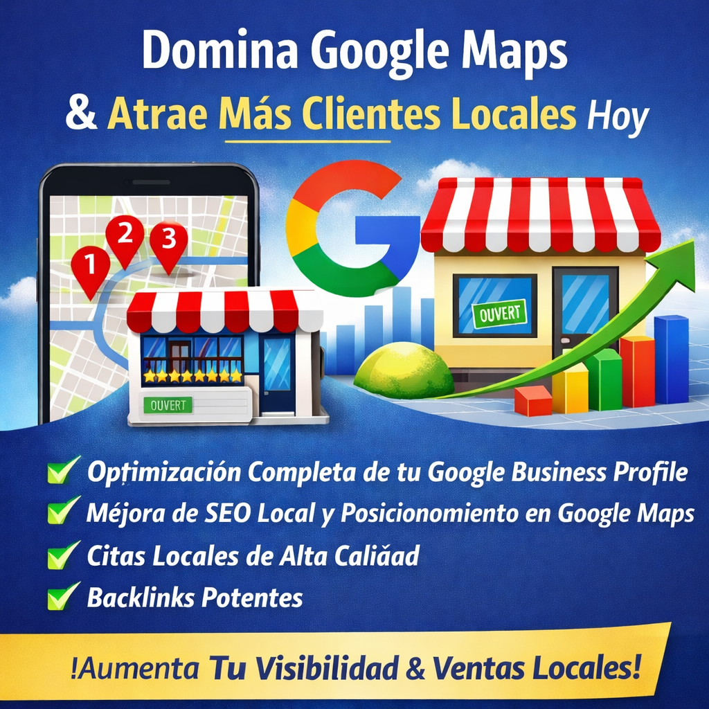 Imagina aparecer en el Top 3 de Google Maps, atraer más clientes locales, aumentar el tráfico hacia tu sitio web y convertir búsquedas en ventas reales — todo gracias a un perfil de Google Business Profile perfectamente optimizado que genera confianza y visibilidad.