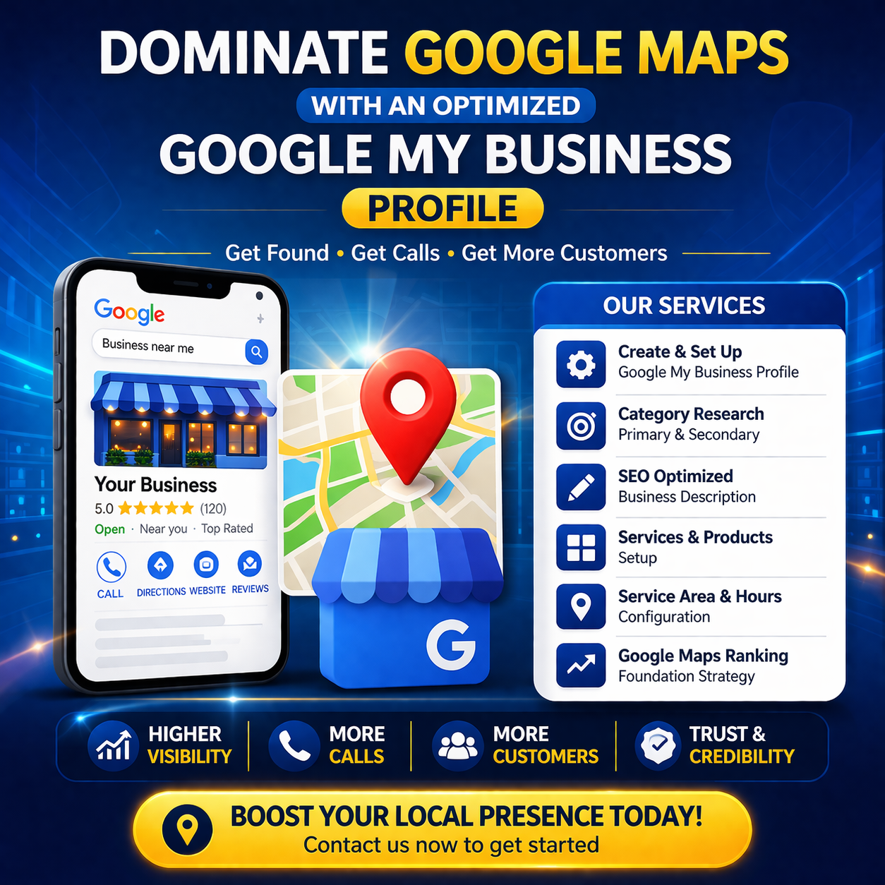 We build a strong and optimized Google My Business that drives visibility, calls, and real customers through Google Maps.