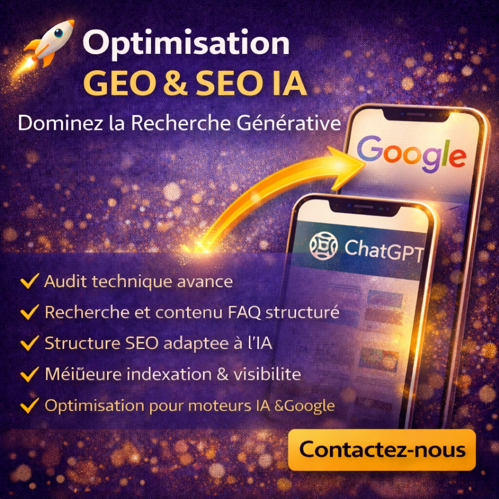 Nous aidons les sites web à s’optimiser pour la Generative Engine Optimization (GEO) afin que votre contenu soit visible non seulement sur Google, mais aussi sur les moteurs de recherche alimentés par l’IA comme ChatGPT, Gemini et d’autres plateformes génératives.