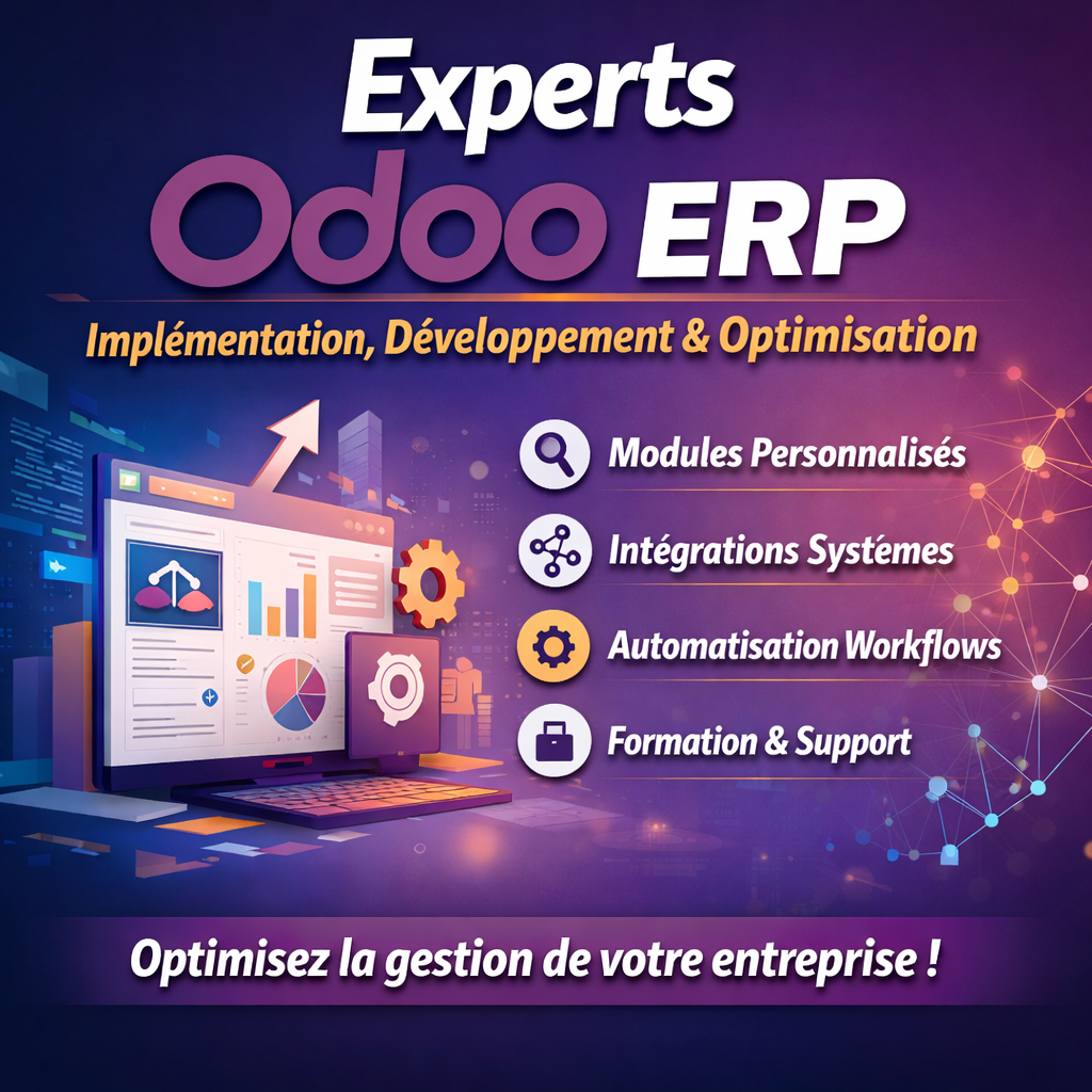 Vous souhaitez implémenter, optimiser ou personnaliser votre système ERP Odoo pour améliorer la performance de votre entreprise ?
