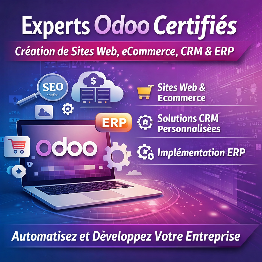 Nous sommes une équipe d’experts certifiés Odoo, spécialisée dans le développement de sites web, l’implémentation CRM & ERP et l’optimisation des solutions digitales pour les entreprises.