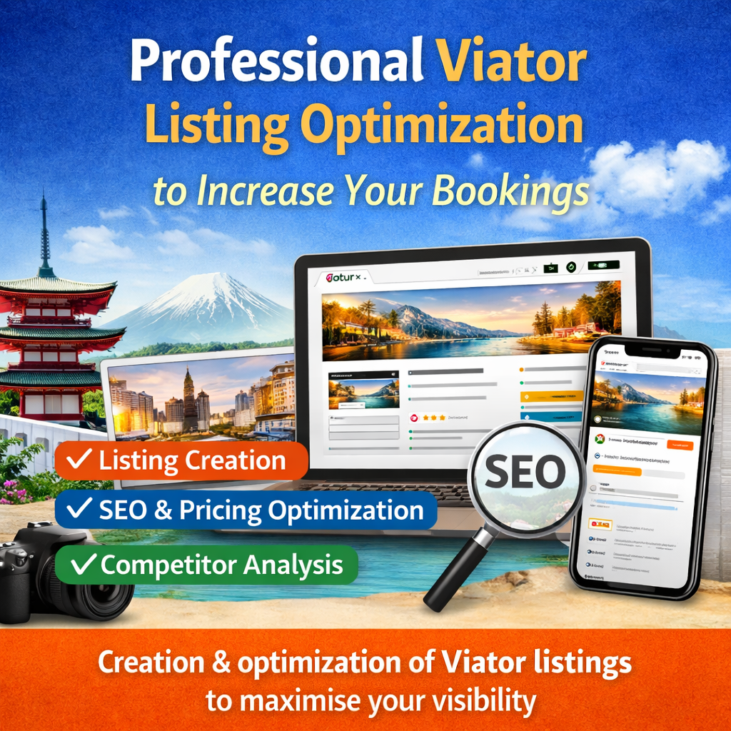 We create and optimize your tour listings on Viator to ensure your services reach the right audience and generate more bookings. Using a strategic approach based on competitor analysis, pricing optimization, and SEO, we help you maximize your performance on one of the world’s leading travel marketplaces.