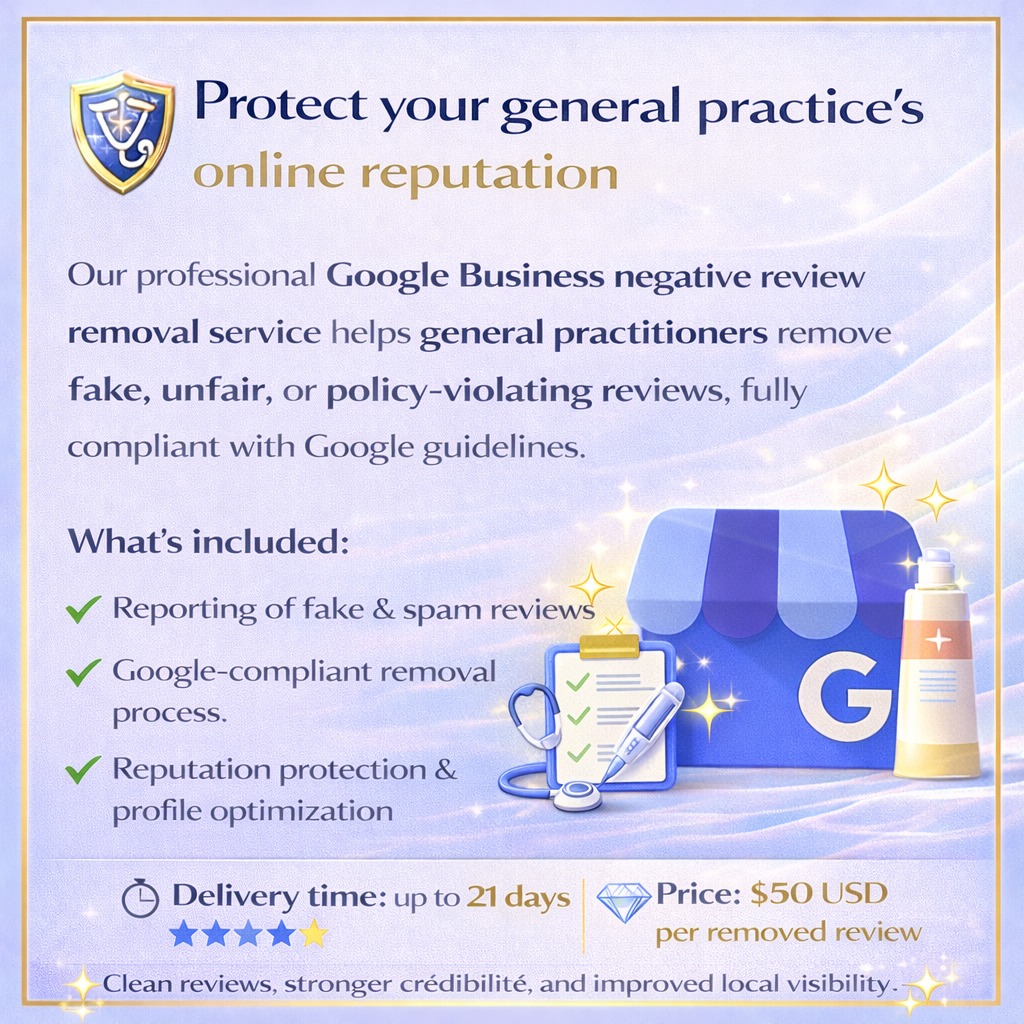 Our professional Google Business negative review removal service helps general practitioners remove fake, unfair, or policy-violating reviews, fully compliant with Google guidelines.