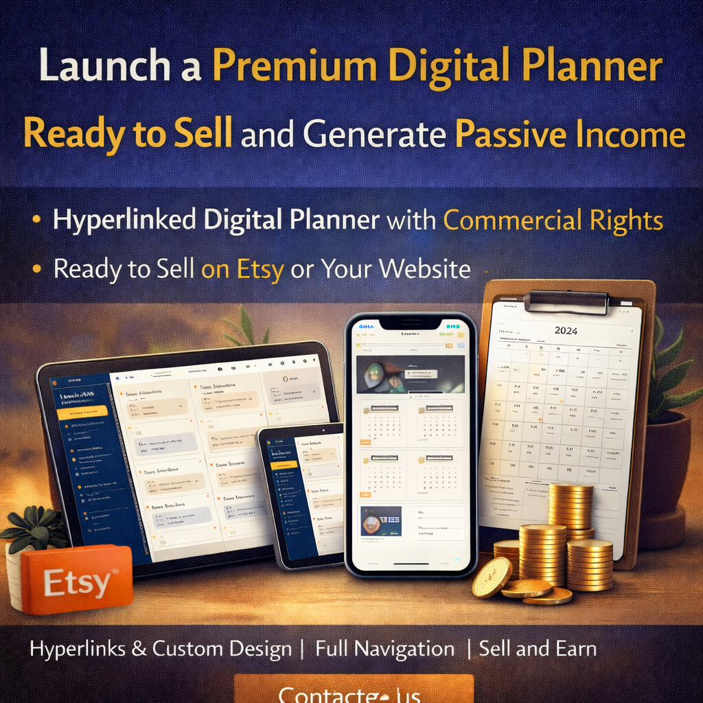 We design premium, fully hyperlinked digital planners and journals ready to sell on Etsy, your website, or any online platform.