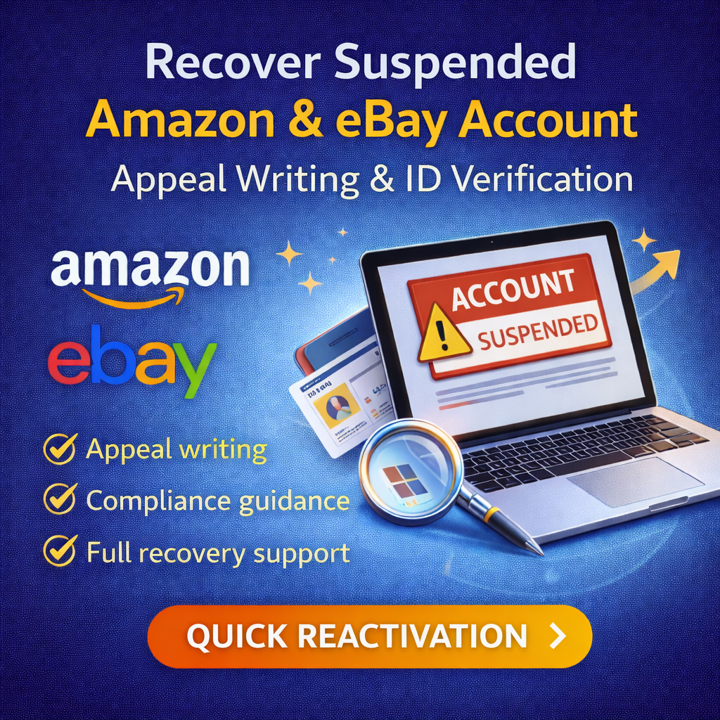 We specialize in Amazon and eBay account reactivation, providing professional, strategic, and compliant solutions to help you restore your seller account as quickly as possible.