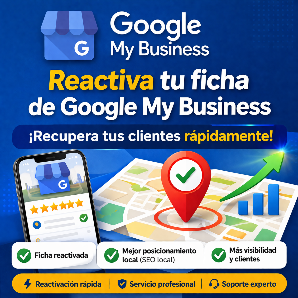 Nos especializamos en la reactivación y recuperación de perfiles de Google My Business, con amplia experiencia en marketing digital y SEO local.