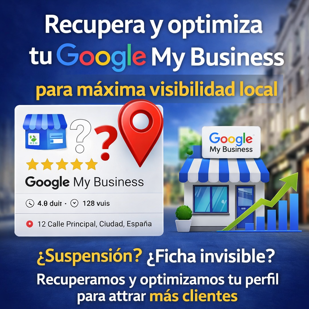 Somos especialistas en la gestión y optimización de Google My Business. Ayudamos a negocios locales a recuperar fichas suspendidas, solucionar problemas de verificación y optimizar completamente sus perfiles para mejorar su posicionamiento en Google Maps y atraer más clientes listos para comprar.