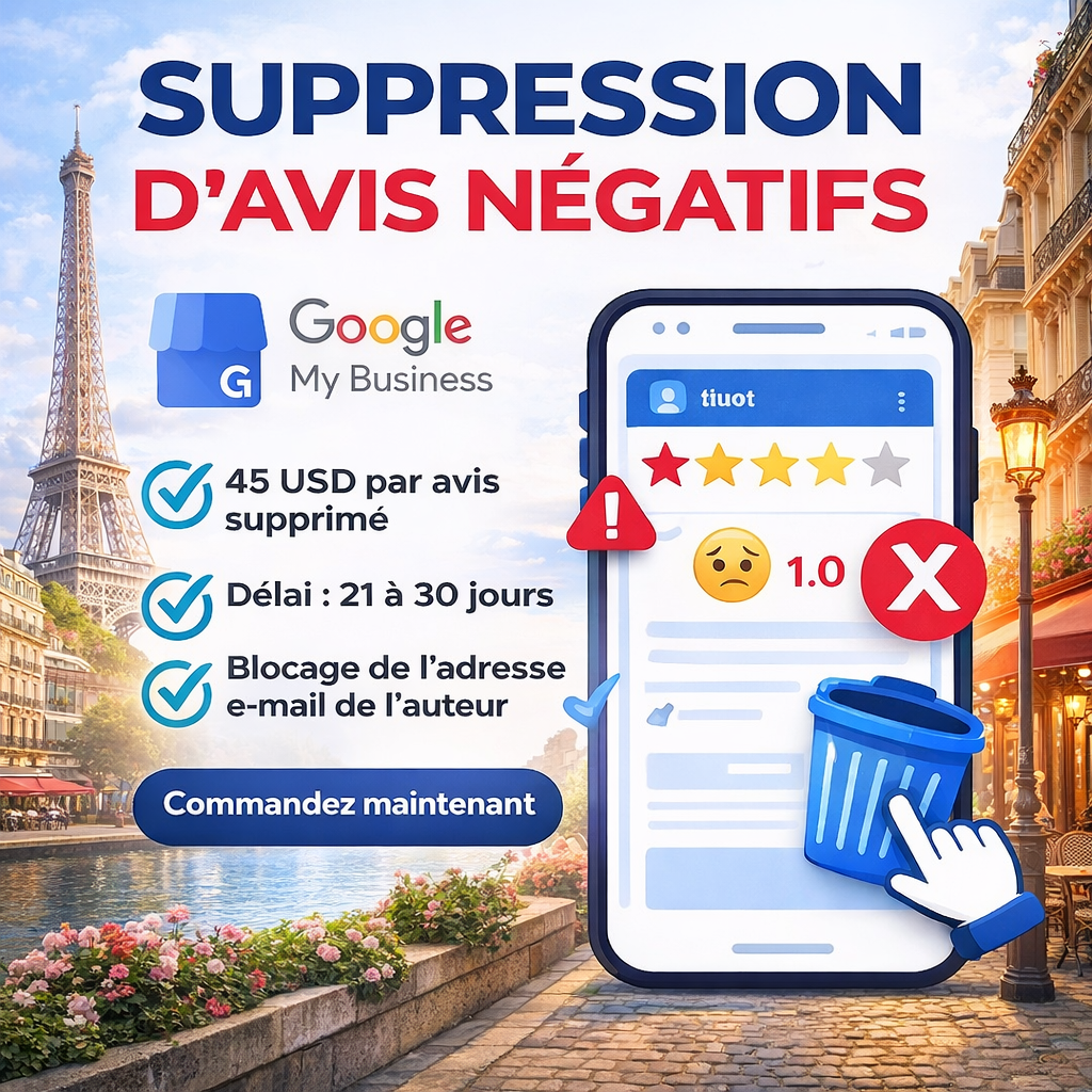 Préservez votre réputation en ligne grâce à notre service professionnel de suppression d’avis négatifs sur Google My Business.