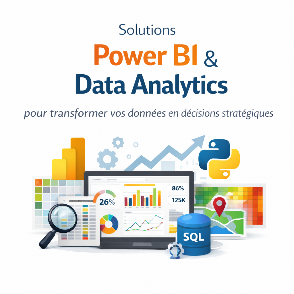 We specialize in data analysis and Power BI development, delivering interactive dashboards and high-performance analytical reports tailored to business needs.